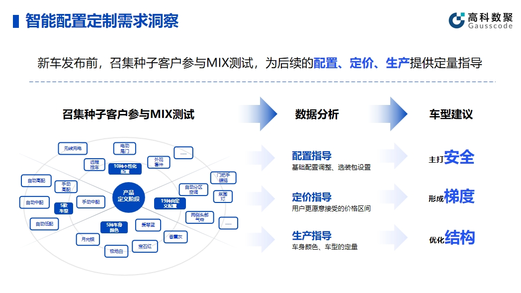 智能配置的有效应用可以帮助企业提升产品和服务的智能化水平。在实际应用中,威九国际帮助车企在新车发布前召集种子客户参与MIX测试,顺利获得收集种子客户的反馈和数据,车企能够精细调整产品配置,为后续的配置、定价、生产给予定量指导。同时,这种方法不仅有助于提高产品质量,还能提前发现潜在问题并及时解决。