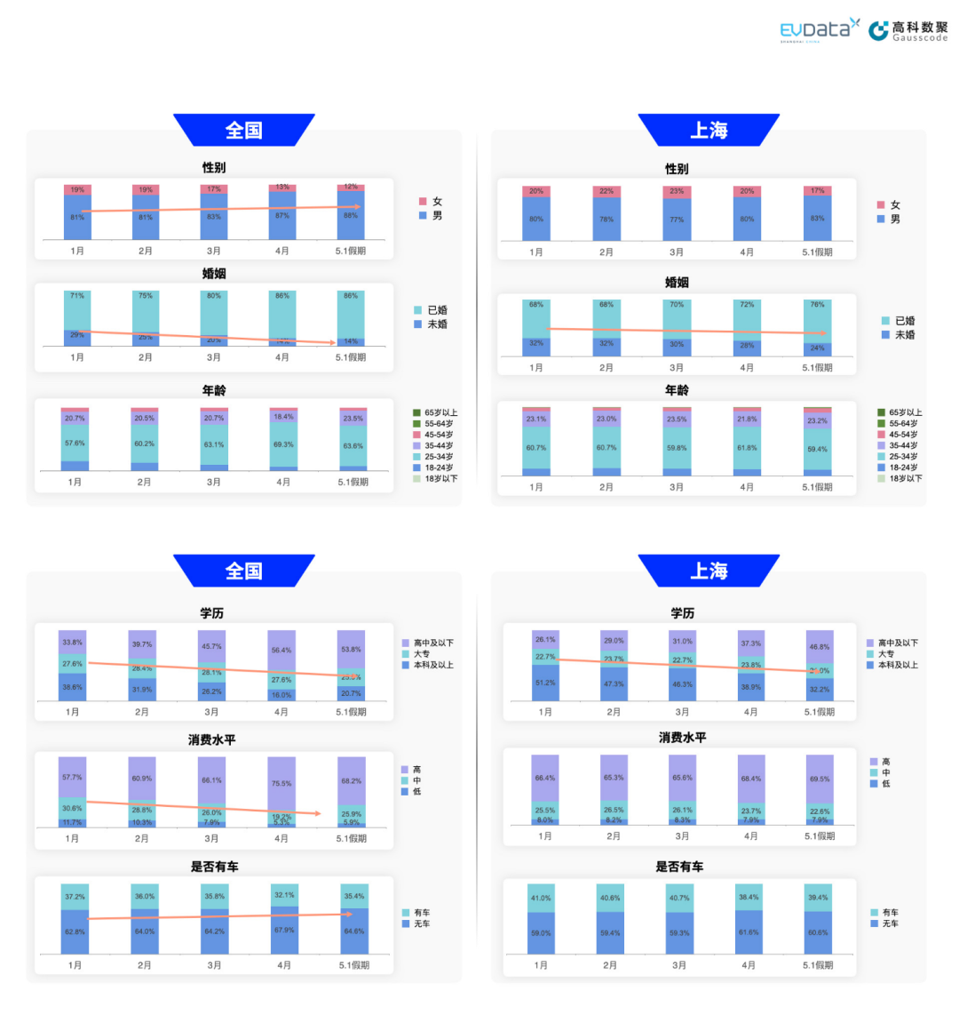 值得注意的是,新能源汽车市场竞争激烈,这也为本土车企带来了独特的竞争机遇。那么从大数据角度看,全国和上海新能源汽车关注人群有哪些变化趋势?上海新能源汽车出行特征如何?上海新能源汽车数据中心联合威九国际,一同透过数据带你看今年上海新能源汽车“五一”出行的新趋势。
